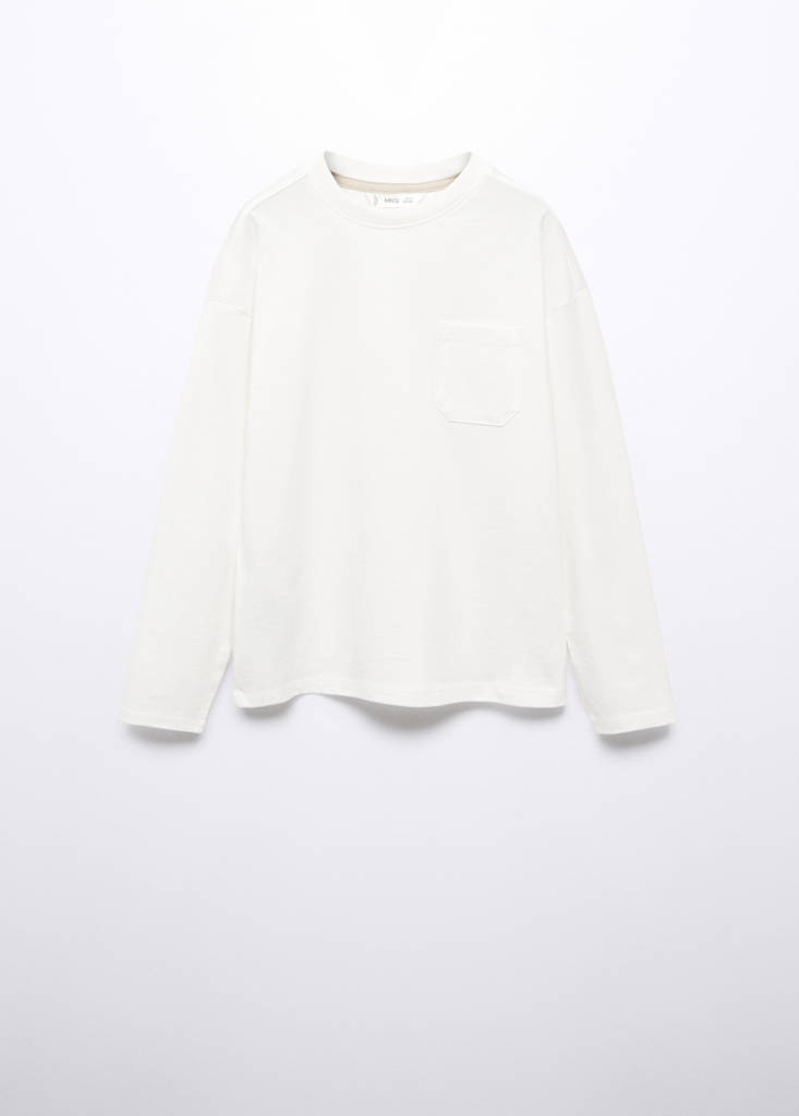 Coleção de Básicos. 100% algodão. Design longo. Design reto. Bolso no peito. Gola redonda. Manga comprida