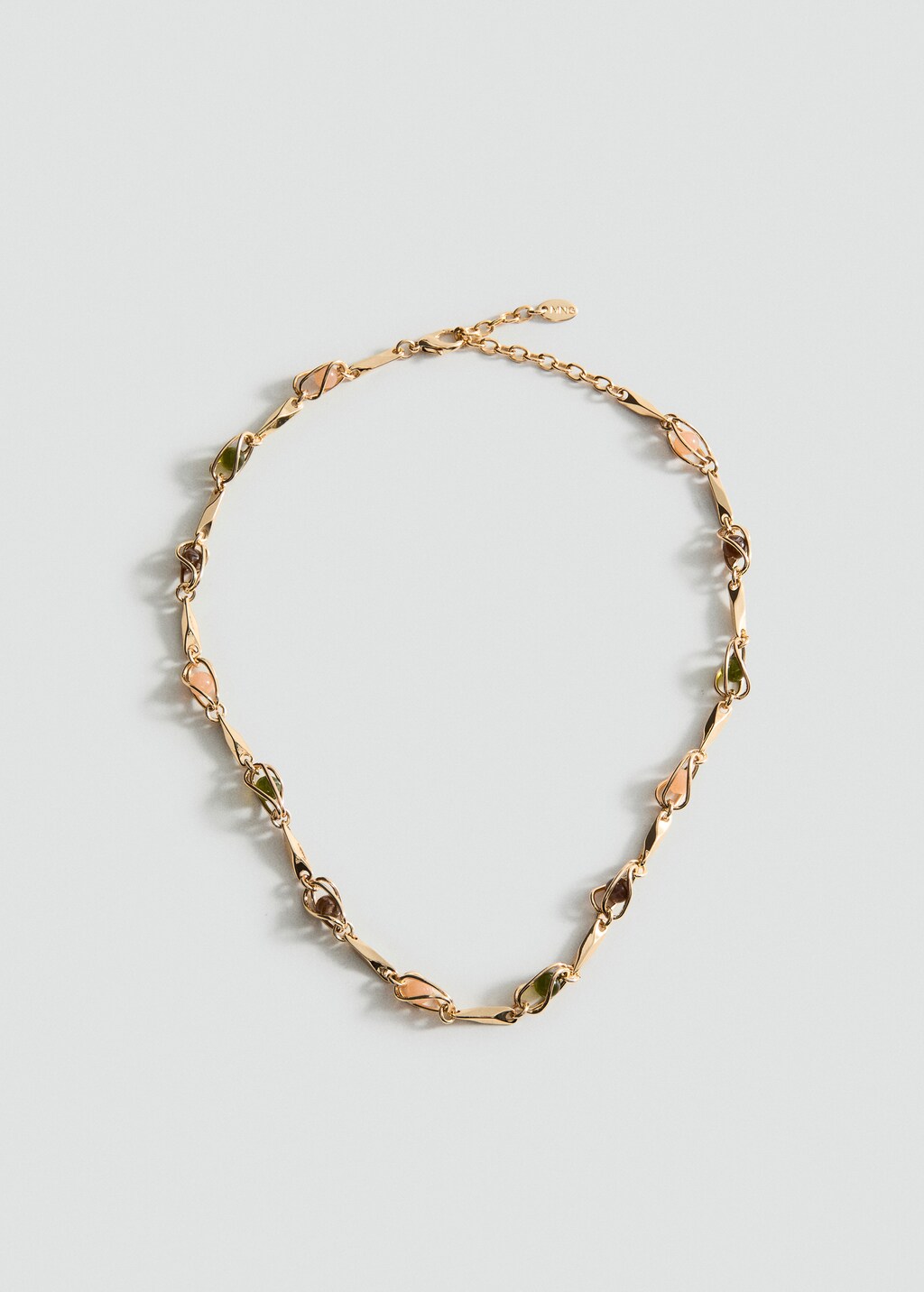 Design combinado. Modelo de corrente. Modelo de bolas. Fecho de corrente e mosquetão.