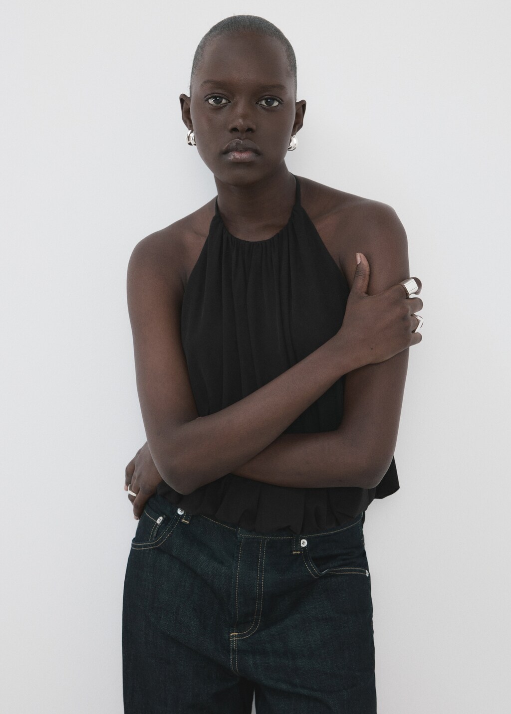 Design ajustado. Gola halter. Sem mangas. Fecho de clip. Forro interior. Exclusivo Online.