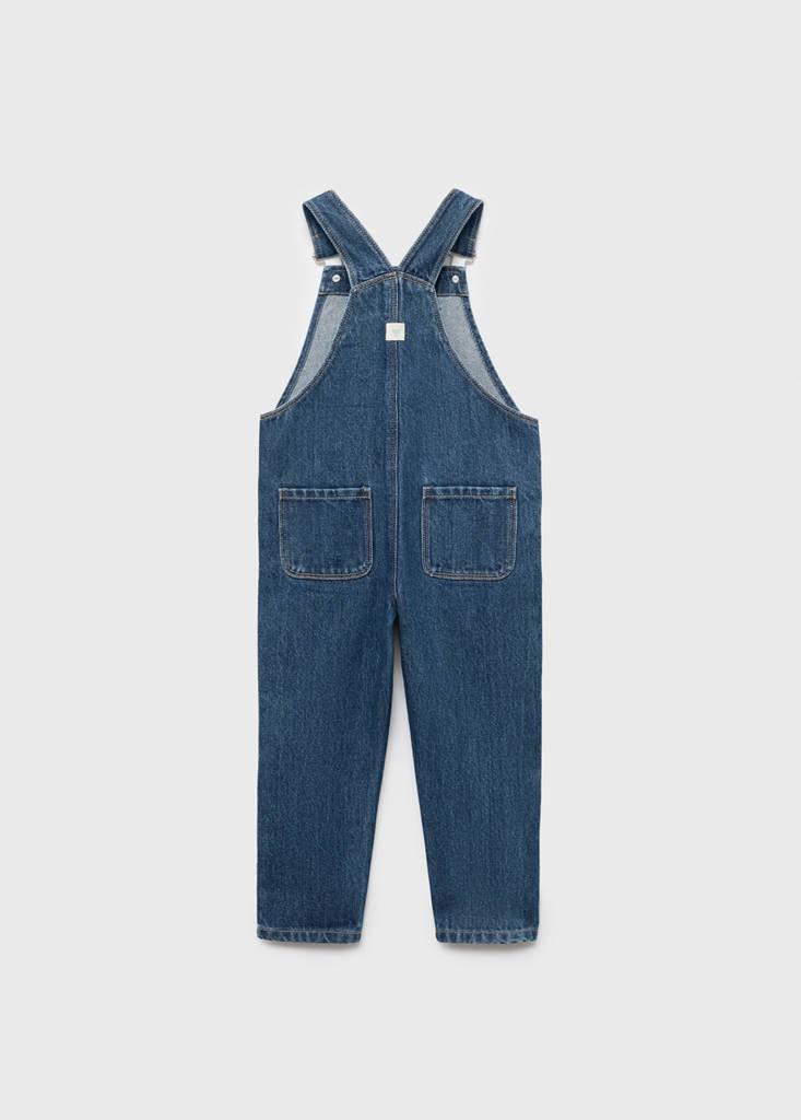 100% Baumwolle. Jeansstoff. Langes Design. Gerader Ausschnitt. Verstellbare Träger. Seitlicher Knopfverschluss. Aufgesetzte Tasche vorne. Zwei seitliche Taschen. Zwei aufgesetzte Taschen hinten. Back to School