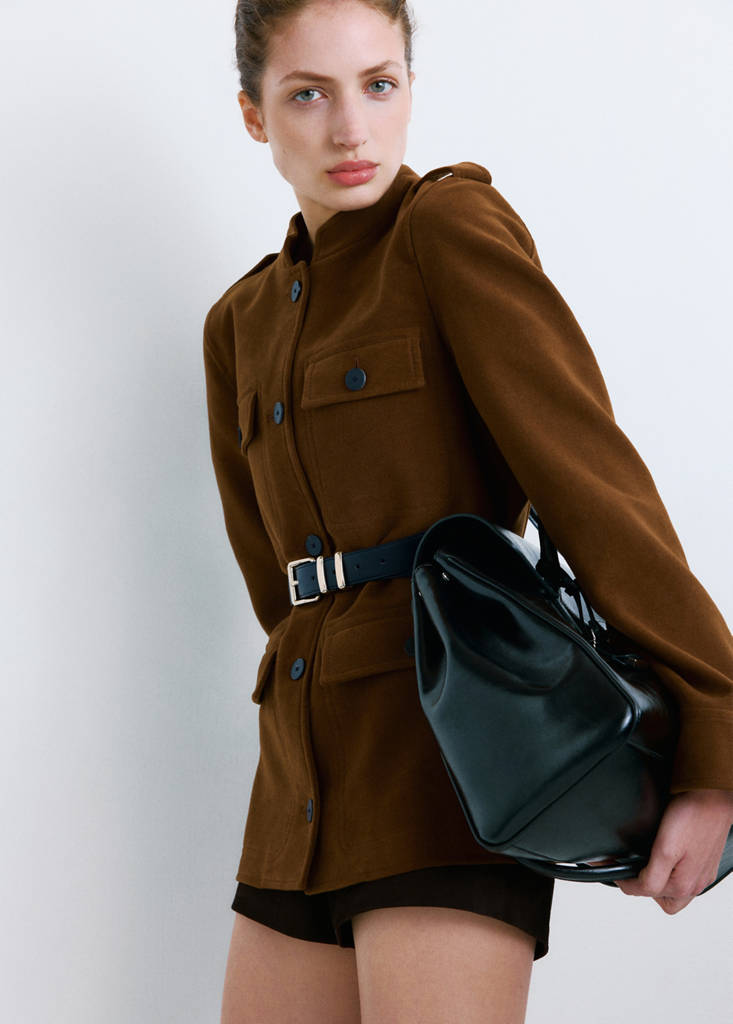 Gerades Design. Stehkragen. Lange Ärmel. Vier Pattentaschen auf der Vorderseite. Vorderer Verschluss mit Knöpfen. Innenfutter. Exklusiv Online