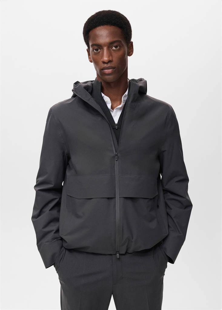 Performance-Kollektion. Water Repellent: Wasserabweisender technischer Stoff. THERMOLITE®: Gewebe, das durch seine Fasertechnologie Wärmeisolierung und Atmungsaktivität bietet. Windproof: Winddichtes Gewebe. Hemdkragen. Mit Kapuze. Zwei aufgesetzte Taschen vorne. Innentasche mit Reißverschluss. Lange Ärmel. Reißverschluss auf der Vorderseite. Saum mit verstellbarem Innenkordelzug