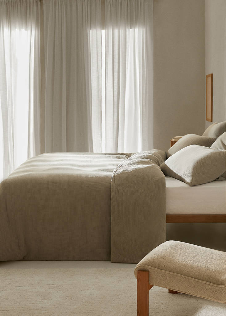 Bett 150/160cm. Größe: 240x220cm. 100 % Baumwolle. 250 Fäden. Mediterraner Stil. Chiffonstoff. In Kombination mit den Kissenbezügen und Kissen aus derselben Kollektion sorgen Sie für ein harmonisch abgestimmtes Schlafzimmer. Knopfverschluss. Füllung nicht enthalten