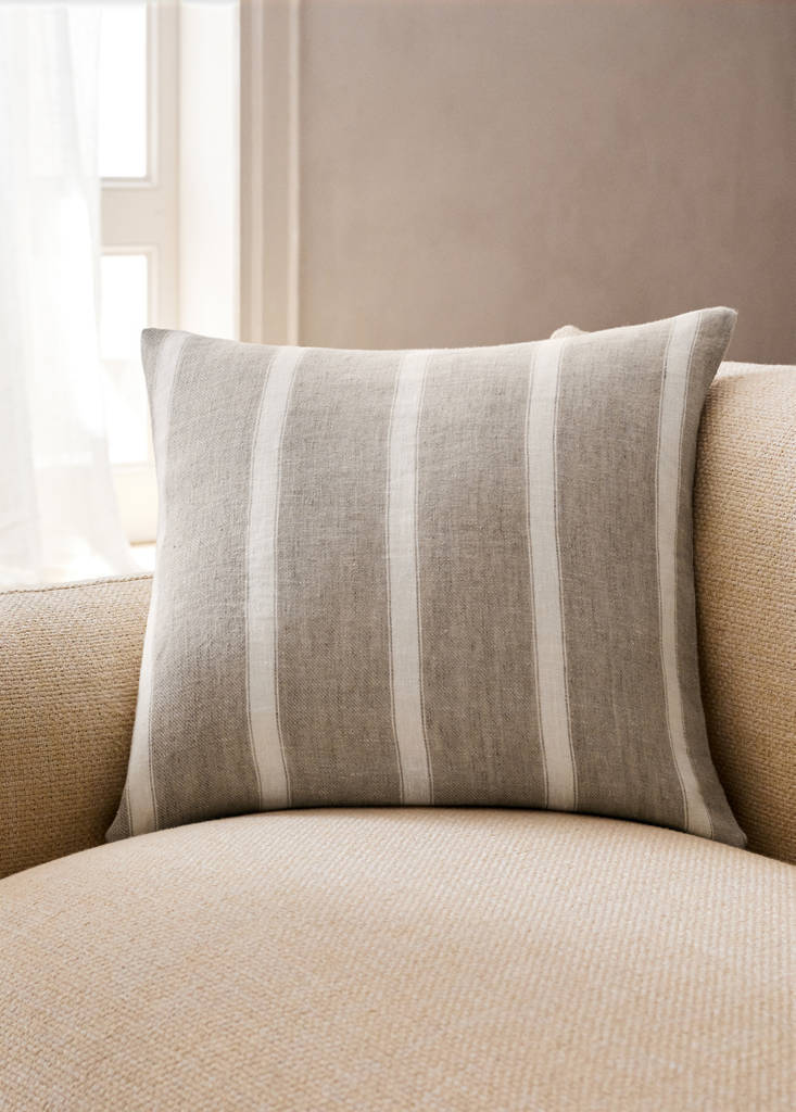 Kissenbezug aus Leinen mit Streifen und Reißverschlussdetail, 50 x 50 cm