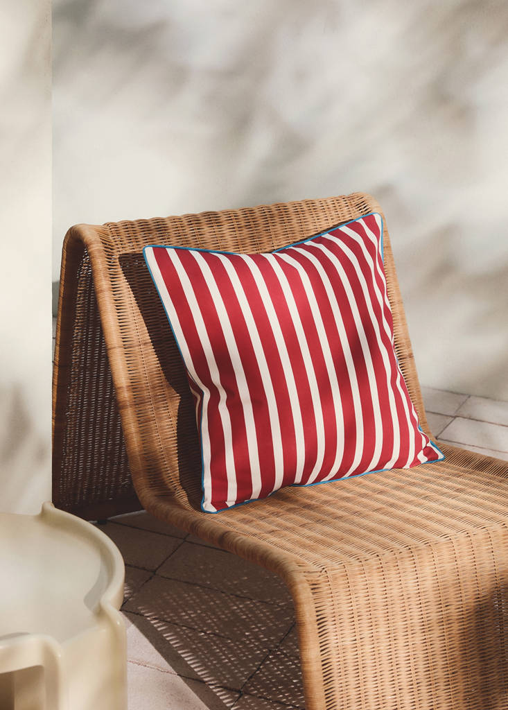 100% Baumwolle. Größe: 50x50cm. Streifendesign. Paspel-Detail. Füllung nicht enthalten. Rückwärtiger verdeckter Reißverschluss. Ideal, um jedem Raum einen farbenfrohen Akzent zu verleihen