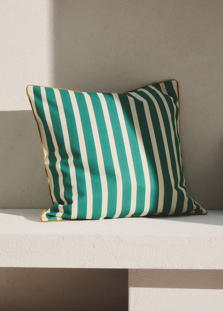 100% Baumwolle. Größe: 50x50cm. Streifendesign. Paspel-Detail. Füllung nicht enthalten. Rückwärtiger verdeckter Reißverschluss. Ideal, um jedem Raum einen farbenfrohen Akzent zu verleihen