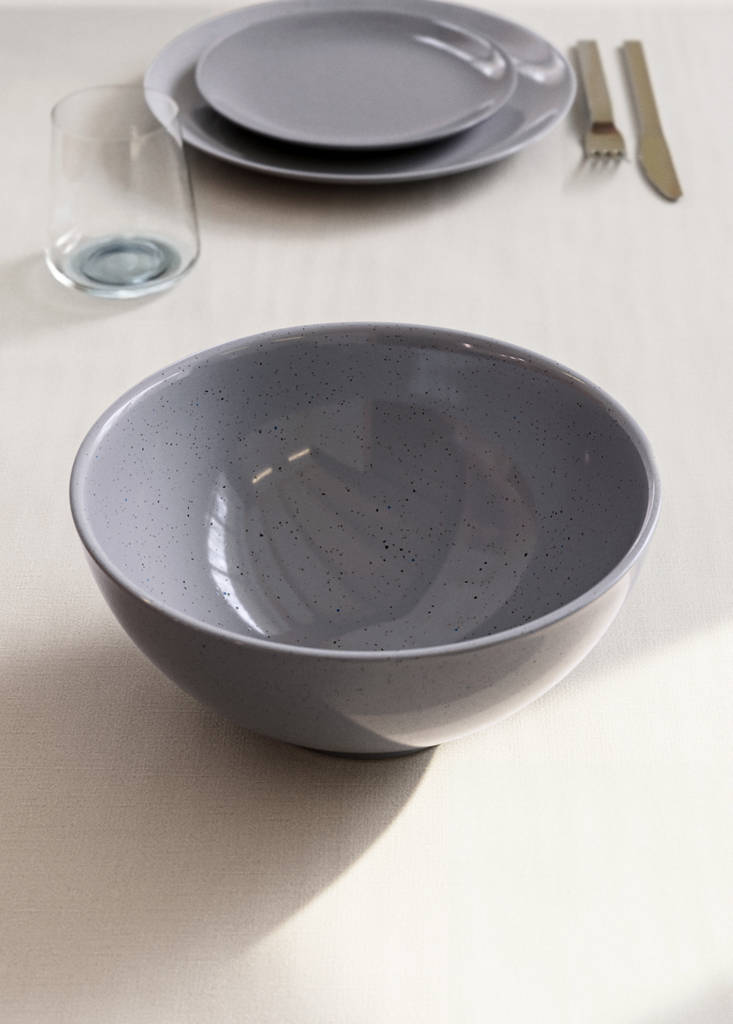 100% Steinzeug. Durchmesser: 25,5 cm. Höhe: 11 cm. Hergestellt in Portugal. Steinzeug ist eine Art Keramik, die für ihre Haltbarkeit und Widerstandsfähigkeit bekannt ist, was diese Schale perfekt für den täglichen Gebrauch und besondere Anlässe macht.. Seine Form ist in der Regel breit und flach, was die Präsentation von Speisen wie Salaten, Pasta oder Beilagen erleichtert.. Geeignet für Mikrowelle und Geschirrspüler. Kombinierbar mit weiteren Produkten der Kollektion