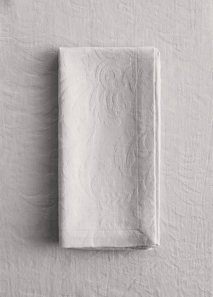 4er-Pack. 100 % Baumwolle. Größe: 45x45 cm. Geblümtes Jacquard-Gewebe. Dekorieren Sie Ihren Tisch mit einem besonderen Touch. Kombinierbar mit weiteren Produkten der Kollektion