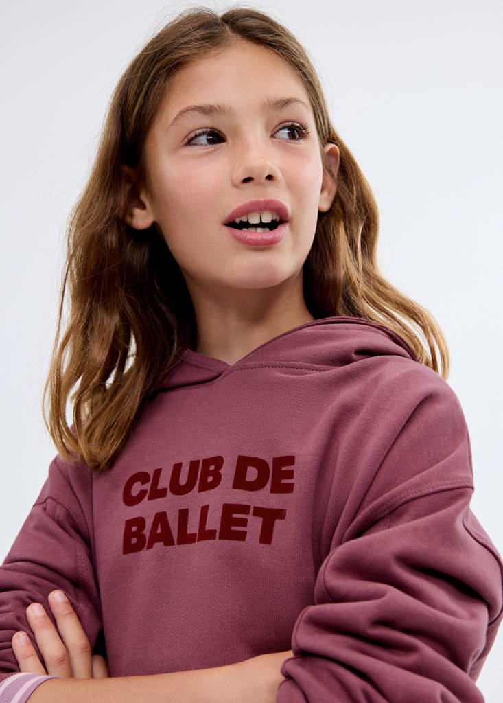 100% Baumwolle. Gerades Design. Bedrucktes Design. Samt-Schriftzug. Mit Kapuze. Lange Ärmel. Aufgesetzte Taschen