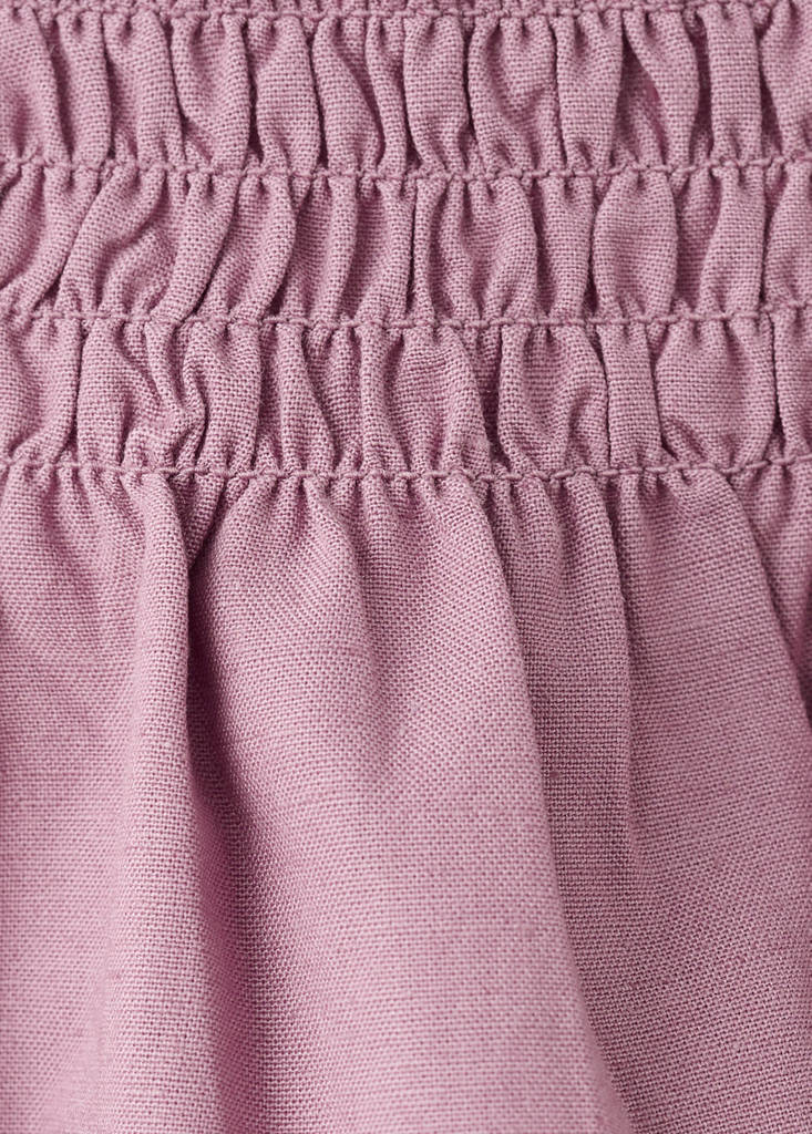 Cotton and linen blend fabric. A-line design. Straps. Gathered detail on the chest