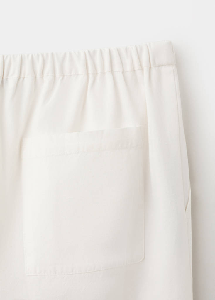 Crafted from a blend of cotton and linen, this straight and long design offers a fluid fabric. The elasticated waistband with adjustable drawstring ensures comfort, while two side pockets and a back patch pocket add functionality.
