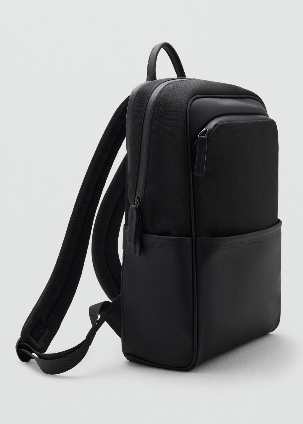 Main compartment with zip closure. Compartment for electronic devices. Pocket on the front. Multifunction interior pockets. Top strap. Two long adjustable straps.