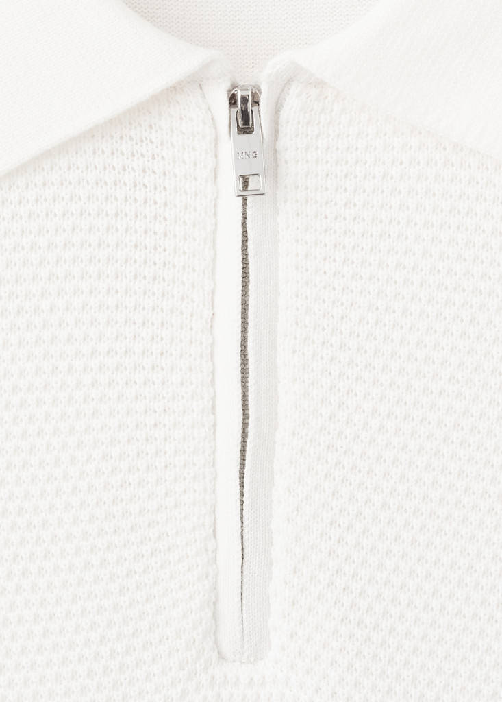 30% off use: SALE30 / Online ExclusiveOpenwork knitted polo shirt with zipCurrent price [$ 79.95 ]$ 79.95Select a colourIvory WhiteThe model is wearing size M and is 6'1" tall.Select your sizeSMLXLXXLMeasurementsAddAdd to your wishlistSee lookFree delivery to storeStraight silhouette. 100% cotton fabric. Fine-knit fabric with openwork details. Polo-neck with zip closure. Contrasting knitted sleeve. Ribbed finish on neck, sleeves and hemDetails, composition and careStore availability