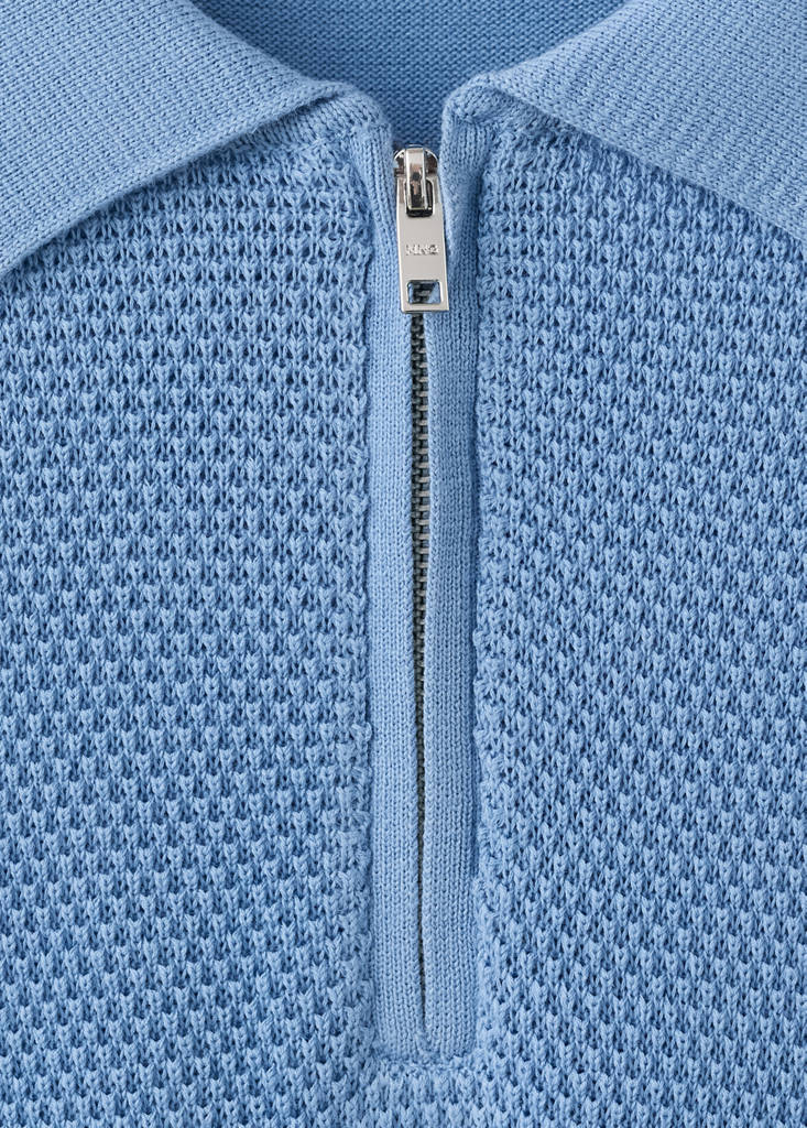 30% off use: SALE30 / Online ExclusiveOpenwork knitted polo shirt with zipCurrent price [$ 79.95 ]$ 79.95Select a colourChina BlueThe model is wearing size M and is 6'1" tall.Select your sizeSMLXLXXLMeasurementsAddAdd to your wishlistSee lookFree delivery to storeStraight silhouette. 100% cotton fabric. Fine-knit fabric with openwork details. Polo-neck with zip closure. Contrasting knitted sleeve. Ribbed finish on neck, sleeves and hemDetails, composition and careStore availability