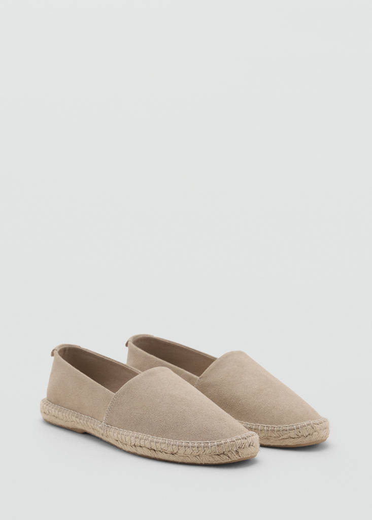 LEATHERJute suede espadrillesCurrent price [$ 139.95 ]$ 139.95Select a colourSandSmall garment - Choose one size up from the usualSelect your size39Not available. I want it!40Not available. I want it!41Not available. I want it!42Not available. I want it!43Not available. I want it!44Not available. I want it!45Not available. I want it!46Not available. I want it!Notify meAdd to WishlistSee lookFree delivery to store100% bovine leather. Round toe. Rubber sole. Backstitched detailsDetails, composition and careStore availability