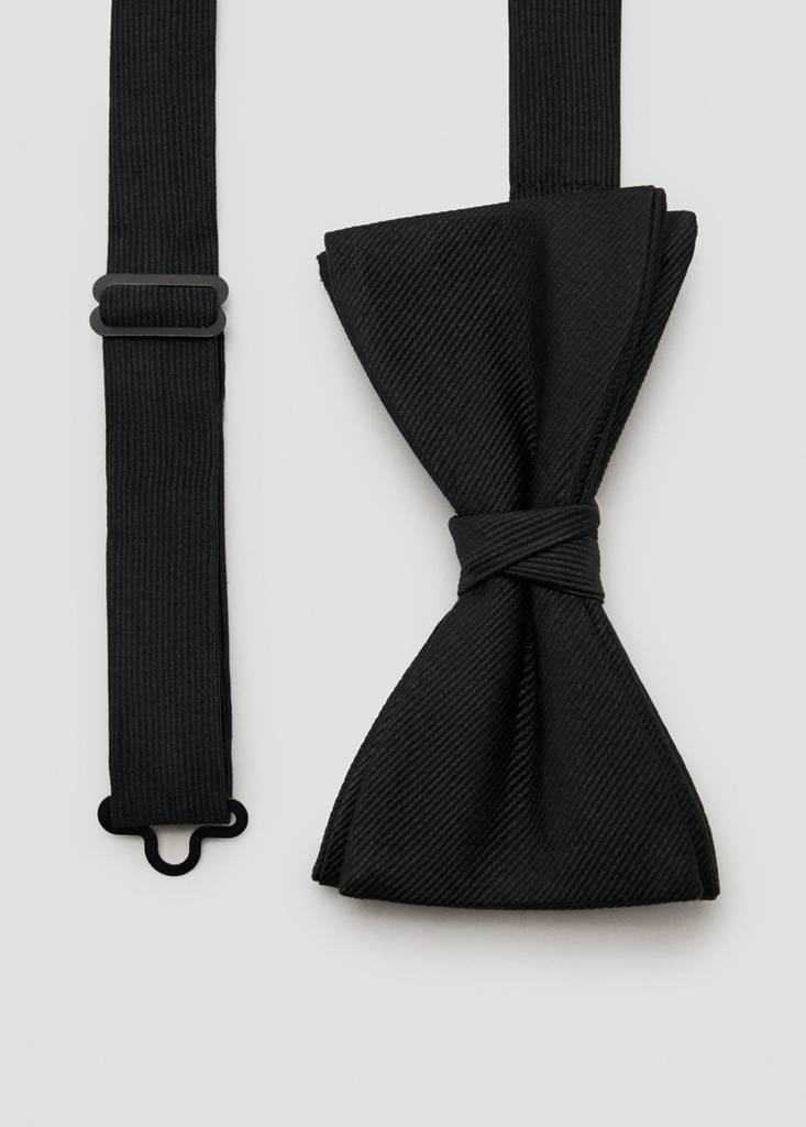 Classic bow tie with microstructureCurrent price [$ 79.95 ]$ 79.95Select a colourBlackSelect your sizeOne sizeAddAdd to your wishlistSee lookFree delivery to storeStructured fabric. 3 cm wide. Metallic clip fastening11.0x8.0 cmDetails, composition and careStore availabilityItem qualitiesSilkAt least 60%As one of the world's most valuable natural fibres, silk gives a lustrous finish and soft feel to garments.