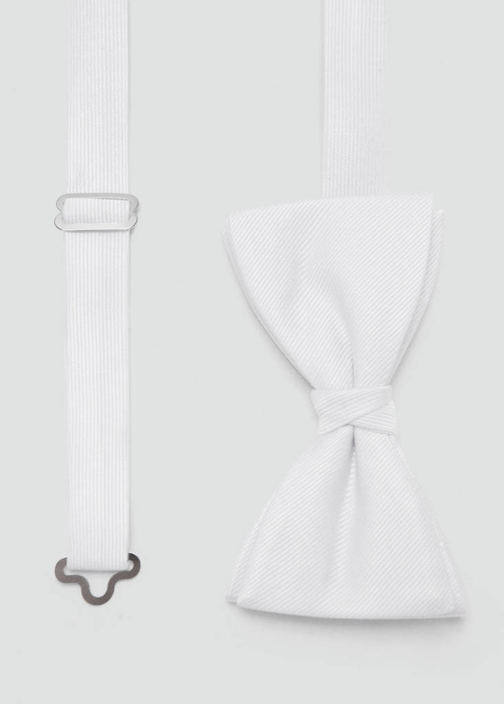 30% OFF USE: FLASH30Classic bow tie with microstructureCurrent price [$ 79.95 ]$ 79.95Select a colourWhiteSelect your sizeOne sizeAddAdd to your wishlistSee lookFree delivery to storeStructured fabric. 3 cm wide. Metallic clip fastening11.0x8.0 cmDetails, composition and careStore availabilityItem qualitiesSilkAt least 60%As one of the world's most valuable natural fibres, silk gives a lustrous finish and soft feel to garments.