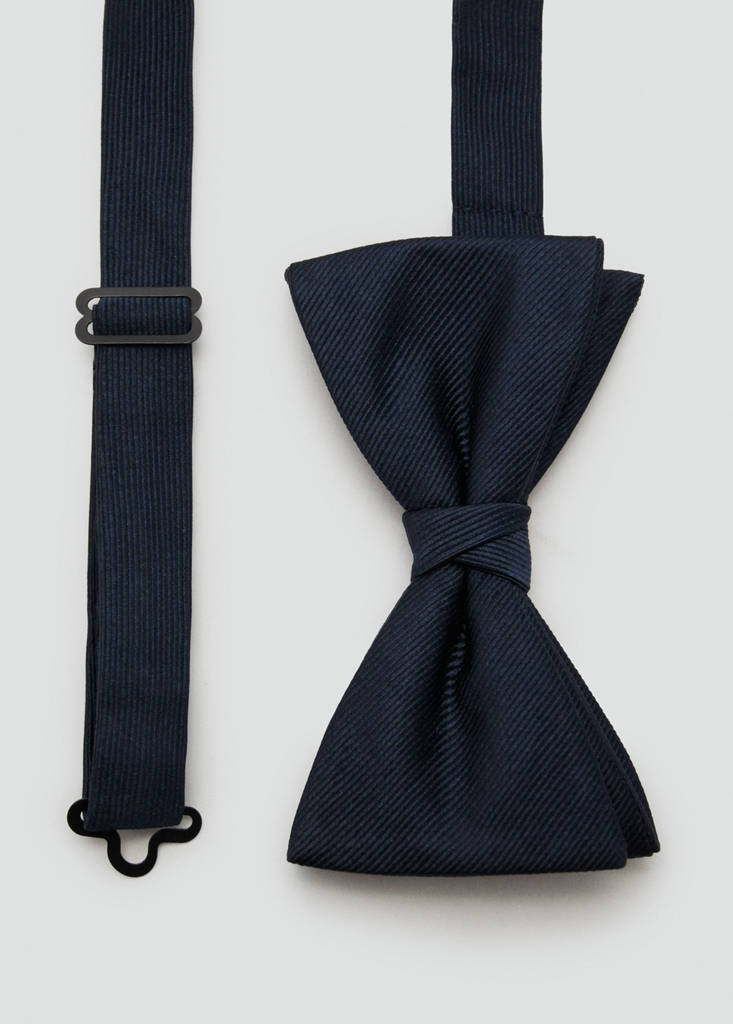 New NowClassic bow tie with microstructureCurrent price [$ 79.95 ]$ 79.95Select a colourNavySelect your sizeOne sizeAddAdd to your wishlistSee lookFree delivery to storeStructured fabric. 3 cm wide. Metallic clip fastening11.0x8.0 cmDetails, composition and careStore availabilityItem qualitiesSilkAt least 60%As one of the world's most valuable natural fibres, silk gives a lustrous finish and soft feel to garments.