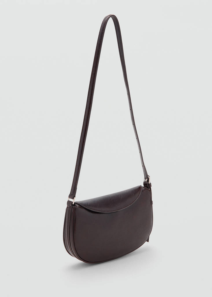 Faux leather. Shiny finish. Oval design. Shoulder strap. Interior pocket. Inside magnet fastening