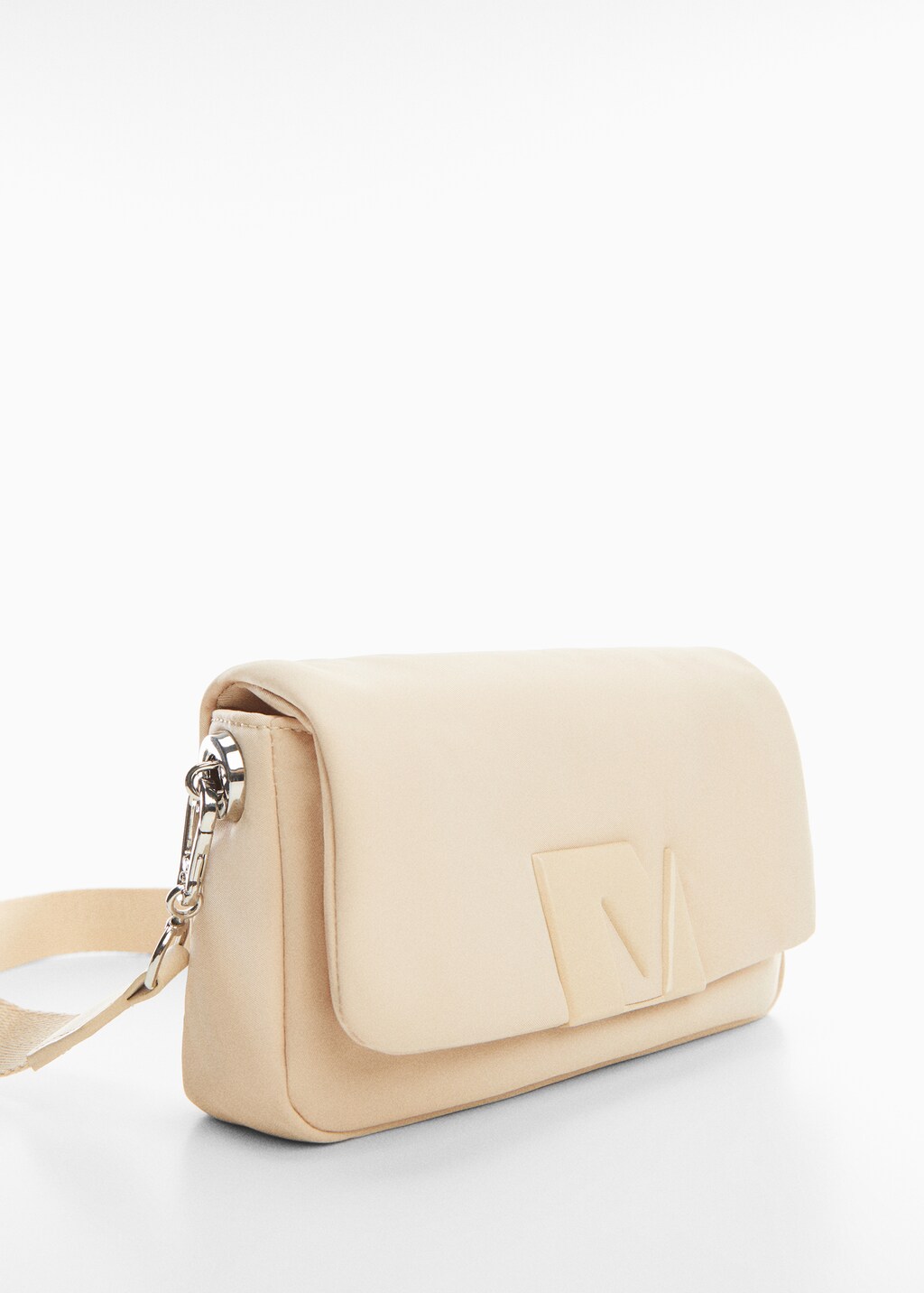 Medium. Quilted design. Long adjustable strap. Removable strap. Flap closure with magnetic button. Inner pocket. Inner lining.
