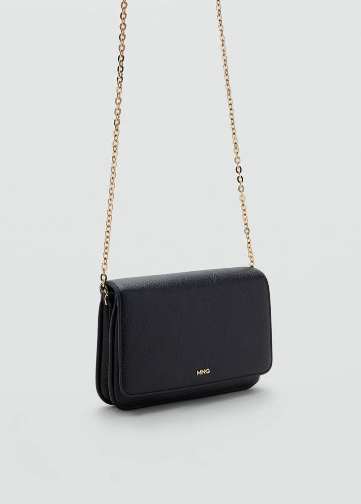 Small crossbody bagCurrent price [$ 49.95 ]$ 49.95Select a colourBlackSelect your sizeOne sizeAddAdd to your wishlistSee lookFree delivery to storeLong detachable chain strap. Inner pockets. Flap closure with magnetic button. Inner lining. Small size20.0x13.0x5.0 cm (Length x Height x Width)Details, composition and careStore availability