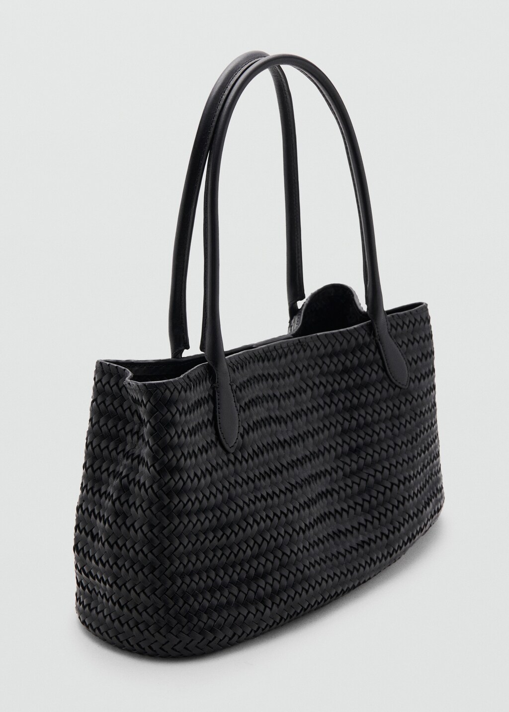 100% bovine leather. Tote design. Medium. Braided design. Short handle. Shoulder strap. Magnetic button closure.