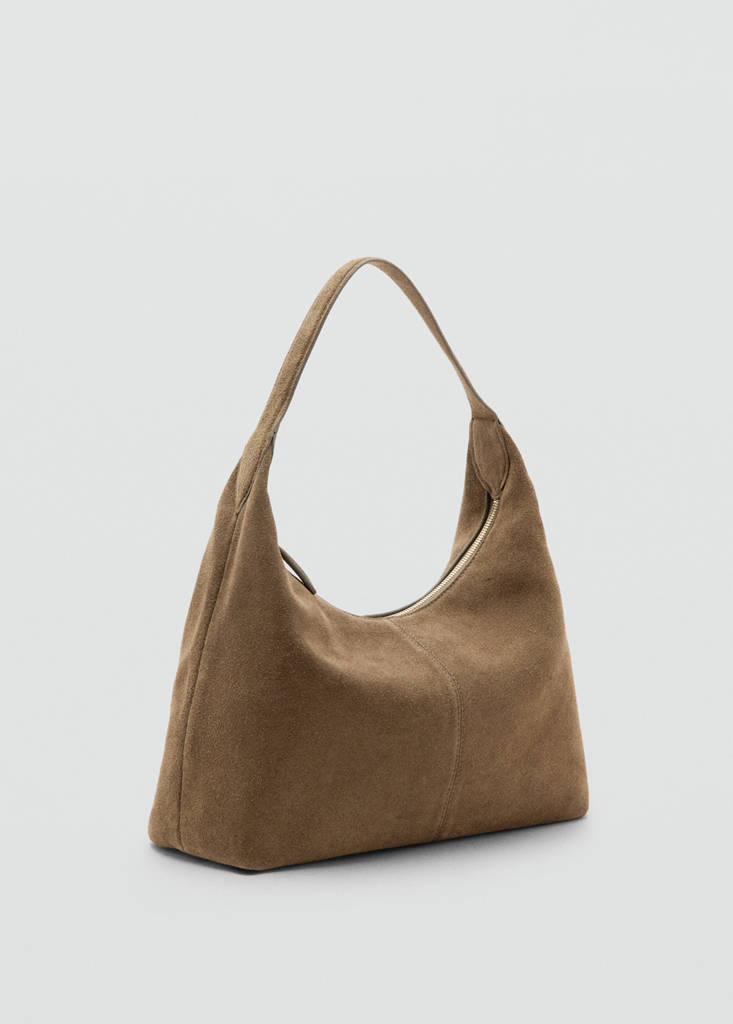 Suede shoulder bag with stitching