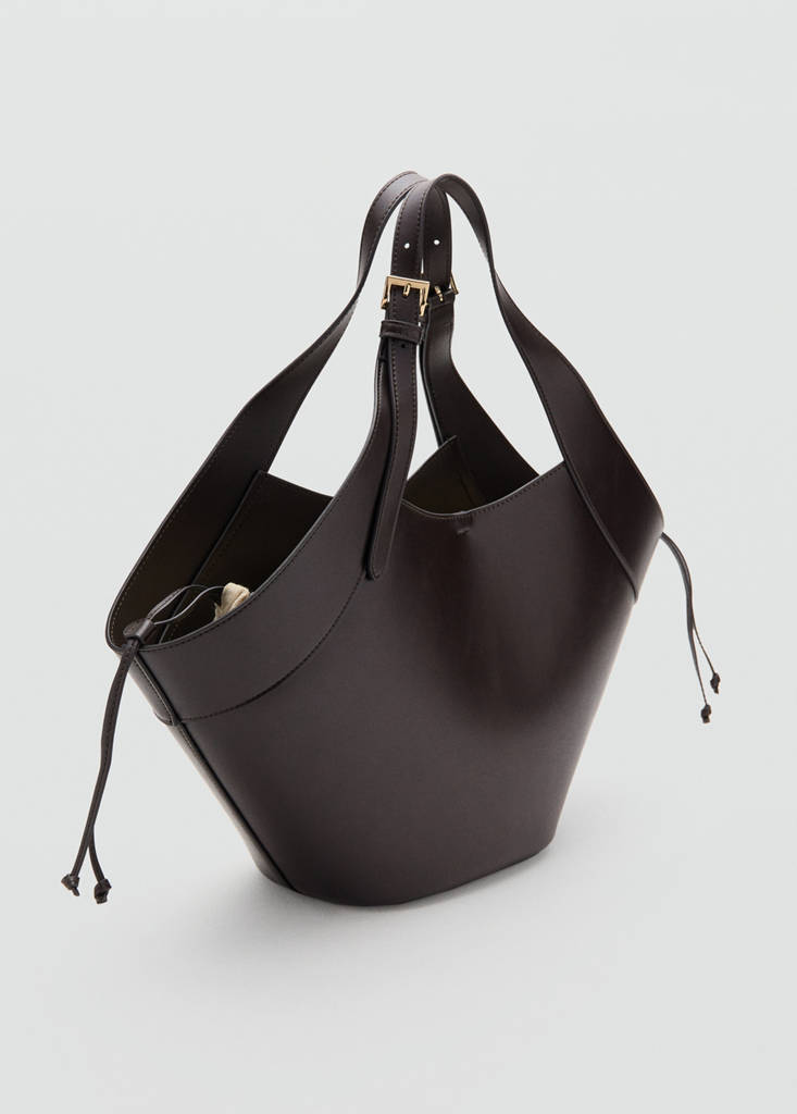 Large. Two short hand grips. Adjustable buckles. Hook fastening. Inside bag. Inner lining