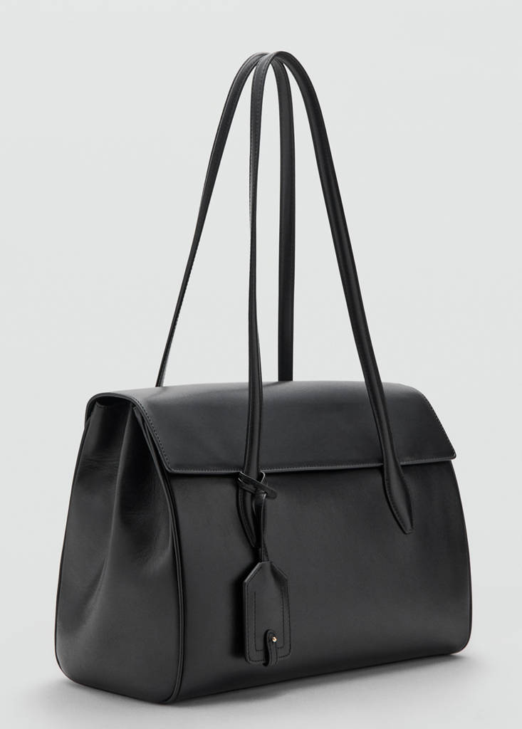100% bovine leather. Shopper style. Two shoulder straps. Charm detail. Two compartments. Magnetic button closure. Online Exclusive