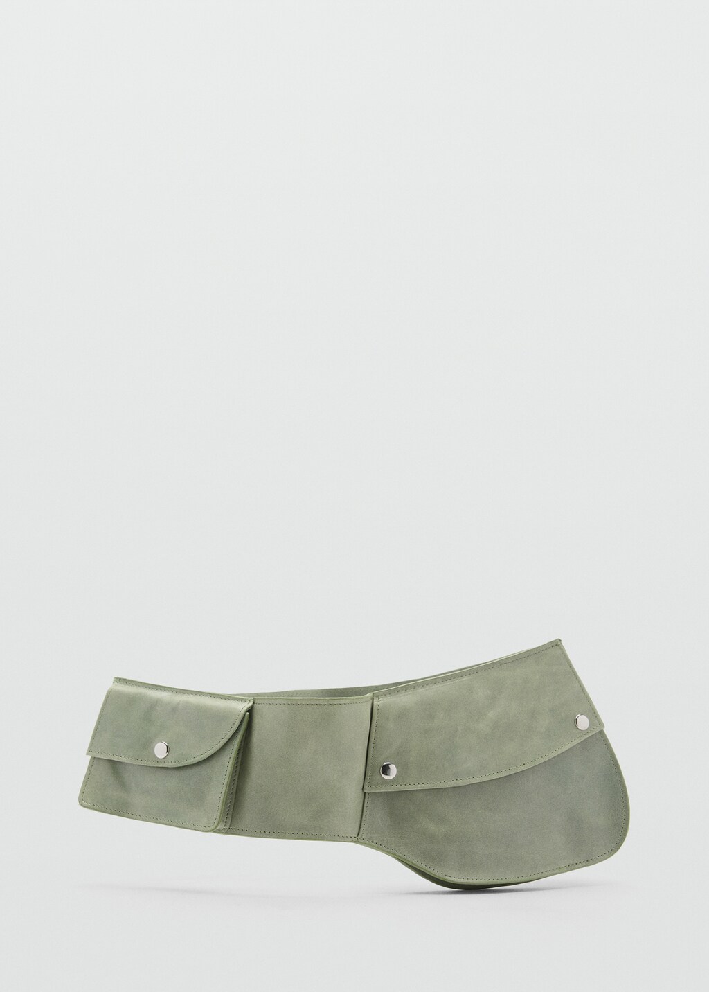 100% bovine leather. Medium. Adjustable belt. Two pockets. Press stud fastening.