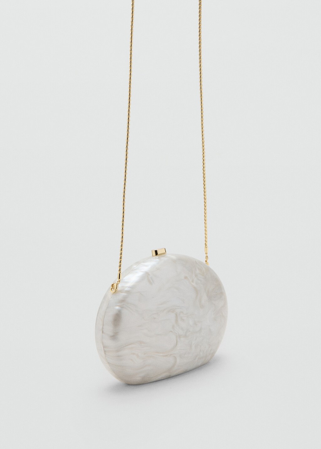 Add to your wishlistOval clutch bagCurrent price [$ 109.95 ]$ 109.95Select a colourIvory WhiteSelect your sizeOne sizeAddAdd to your wishlistFree delivery to storeSee availability in storeDescriptionSmall size. Rigid design. Clutch style. Long detachable chain strap. Press stud fastening. Inner lining.See detailsShare