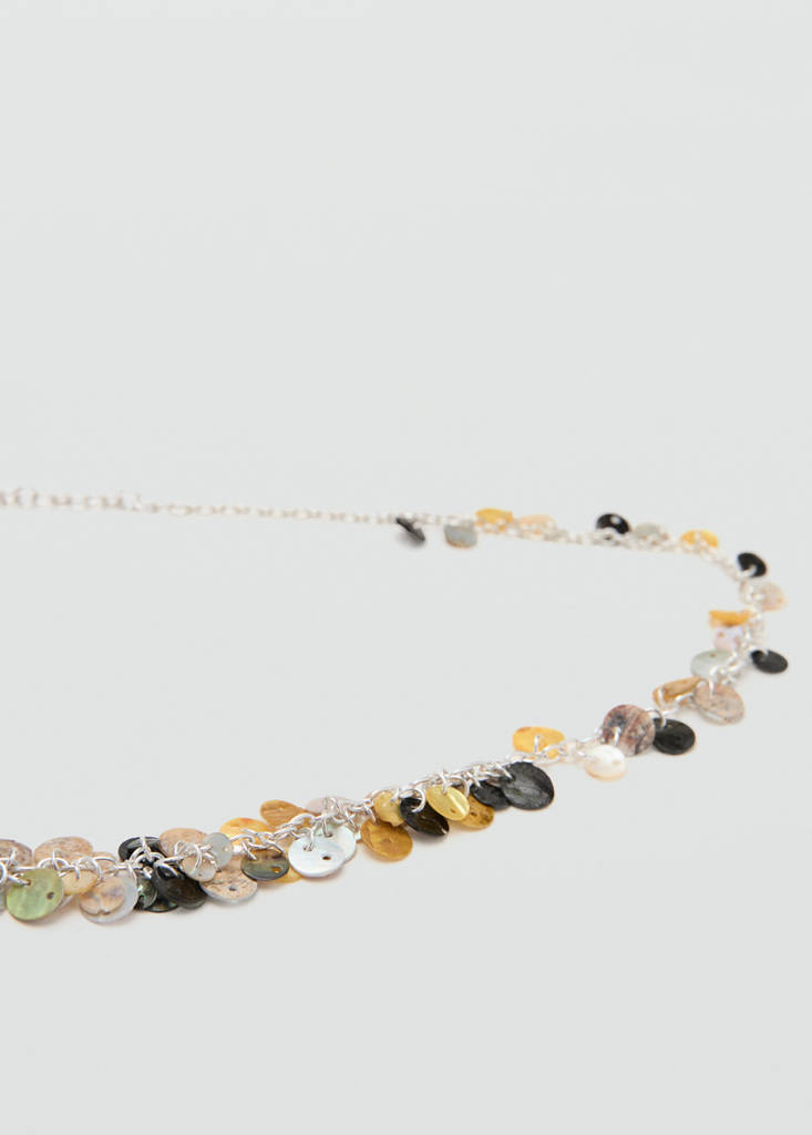 Chain design. Decorative buttons. Zip and carabiner fastening
