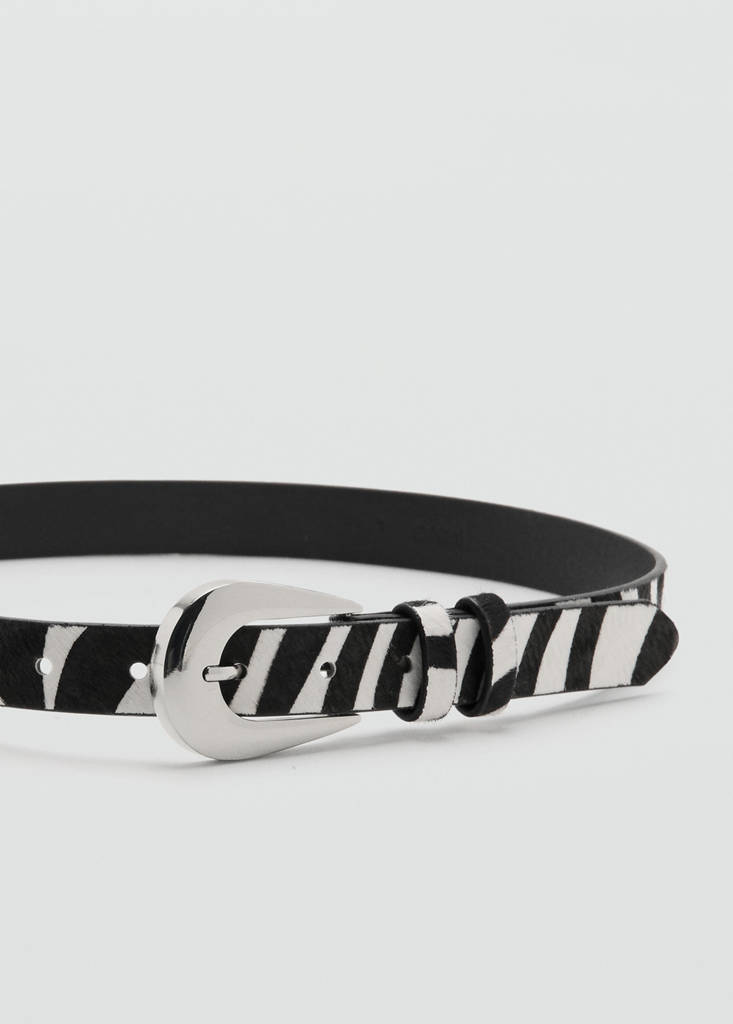100% bovine hair-on leather. Zebra print. Buckle closure
