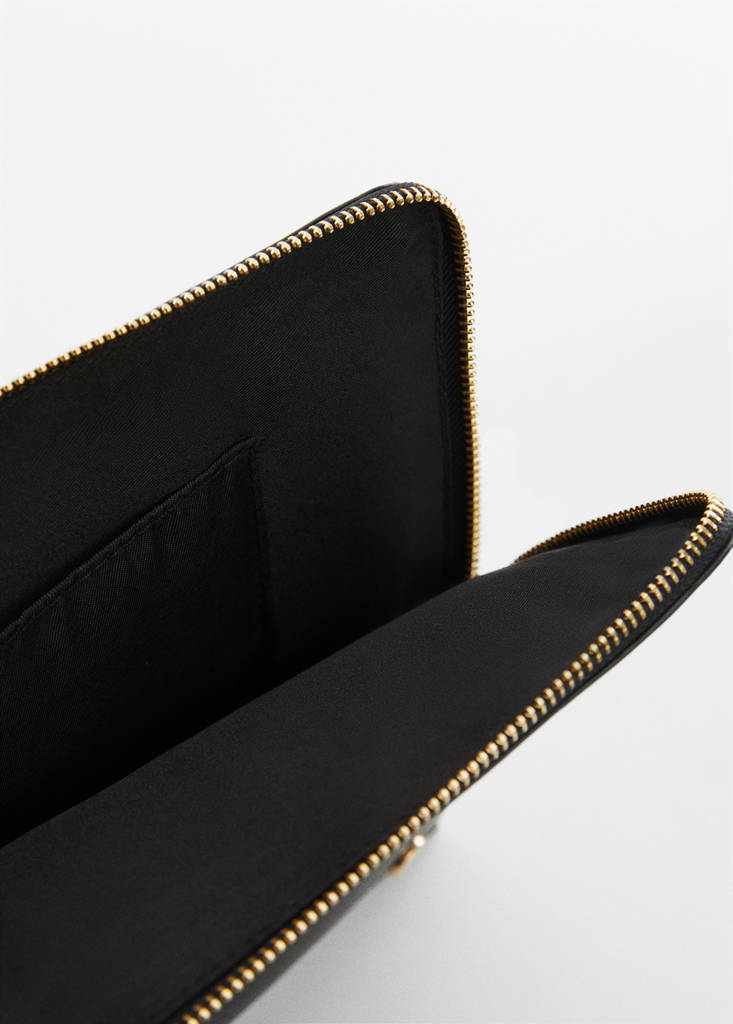 Large. Faux-saffiano leather. Decorative badge. Zip fastening. Inner lining. 13 inches