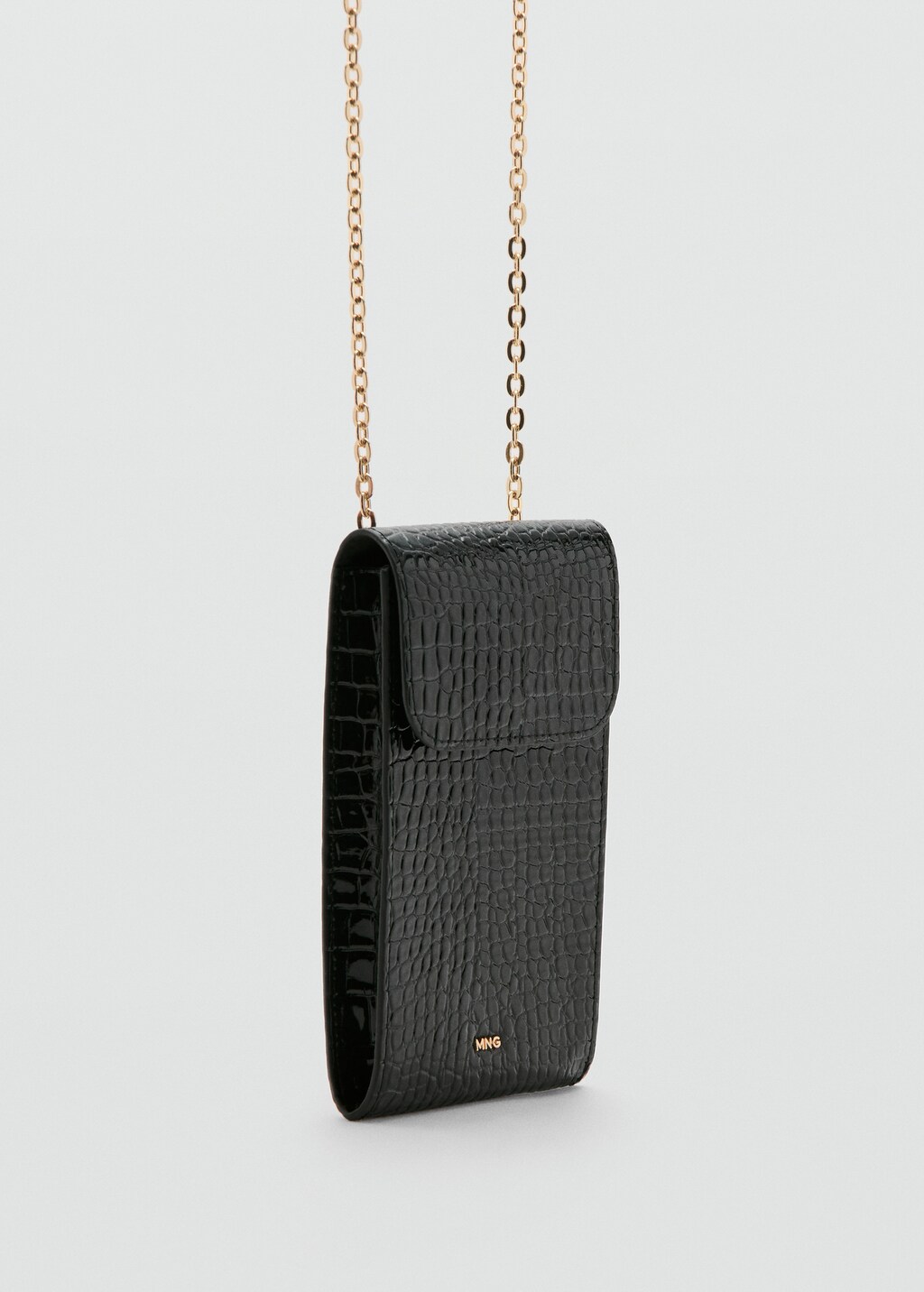 Shiny glitter coconut phone caseCurrent price [$ 39.95 ]$ 39.95Select a colourBlackSelect your sizeOne sizeAddAdd to your wishlistFree delivery to storeSee availability in storeDescriptionCrocodile skin. Debossed logo. Chain strap. Flap closure with magnetic button. Inner lining.See detailsShare