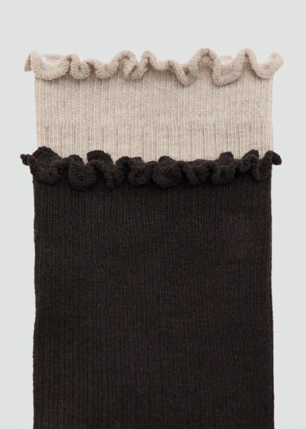 New NowPack of 2 ribbed cotton socksCurrent price [$ 25.95 ]$ 25.95Select a colourChocolateSelect your sizeOne sizeAddAdd to your wishlistFree delivery to storeSee availability in storeDescriptionSet of 2. Ankle design. Cotton fabric. Ribbed design.See detailsShare