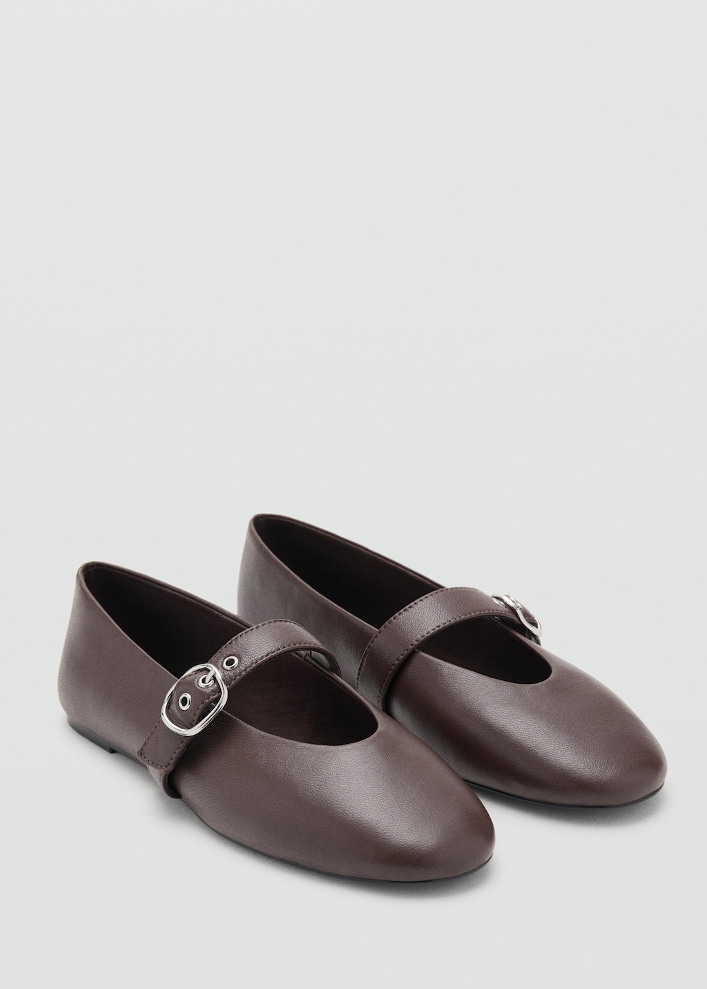 New NowLeather ballerina with strap and buckleCurrent price [$ 129.95 ]$ 129.95Select a colourChocolateSelect your size3536373839404142Size guideAddAdd to your wishlistFree delivery to storeSee availability in storeDescription100% ovine leather. Flat. Round toe. Strap closure with buckle. Inner lining.See detailsShare