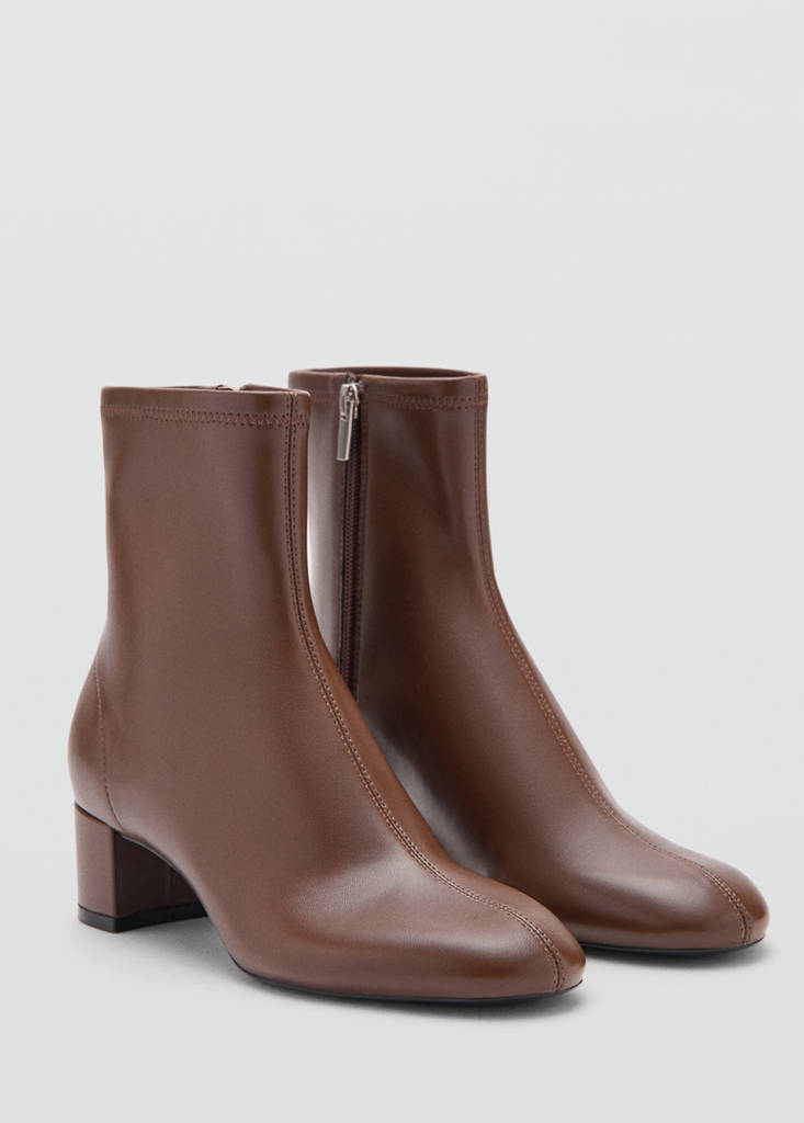 Round-toe block-heel ankle bootsInitial price struck through [$ 109.95 ]$ 109.95Current price [$ 79.95 ]$ 79.95-27%Select a colourChocolateSelect your size35Not available. I want it!36Not available. I want it!37Not available. I want it!38Not available. I want it!39Not available. I want it!40Not available. I want it!41Not available. I want it!42Not available. I want it!DimensionsNotify meAdd to WishlistSee lookFree delivery to storeFaux leather. Round toe. Backstitched detail. Block heel. Side zip closure. 5 cm heel. The colour brown is exclusive onlineDetails, composition and careStore availability