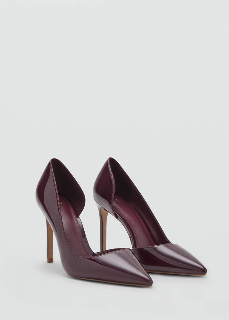 Asymmetrical patent leather court shoesCurrent price [$ 99.95 ]$ 99.95Select a colourBurgundySelect your size3536Not available. I want it!37Last few items!3839Last few items!4041Last few items!42Last few items!DimensionsAddAdd to your wishlistSee lookFree delivery to storePatent leather effect. Asymmetric design. Pointed. Stiletto heel. 10 cm heelDetails, composition and careStore availability