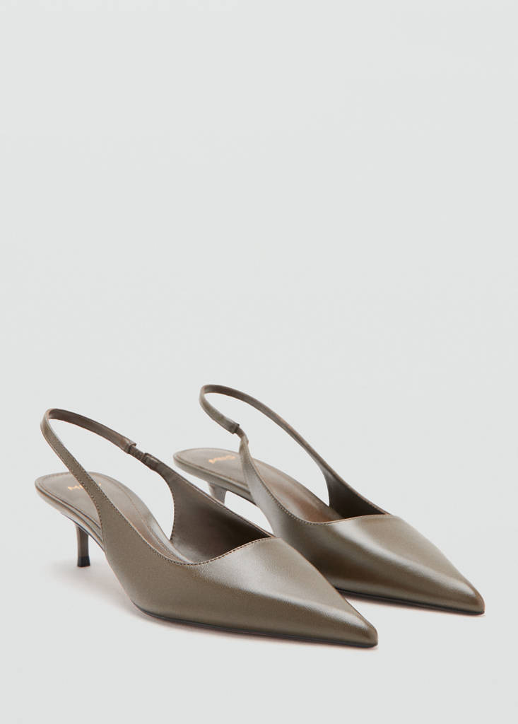 New NowPointed-toe leather heeled shoesCurrent price [$ 139.95 ]$ 139.95Select a colourKhakiSelect your size3536373839404142MeasurementsAddAdd to your wishlistSee lookFree delivery to store100% sheepskin. Slingback design. Pointed. Kitten heel. Strap closure. Khaki is an online exclusiveDetails, composition and careStore availability