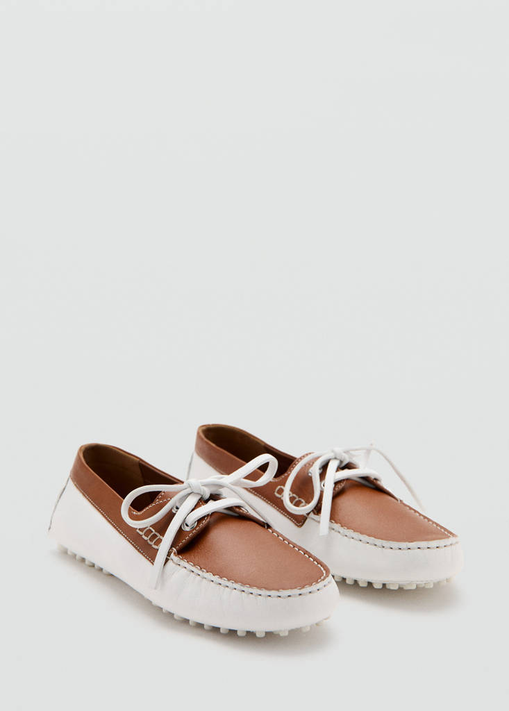100% Leather. Contrasting trim pieces in the cut. Lace closure with two positions. Contrast topstitching. Rounded toe. Studded rubber sole