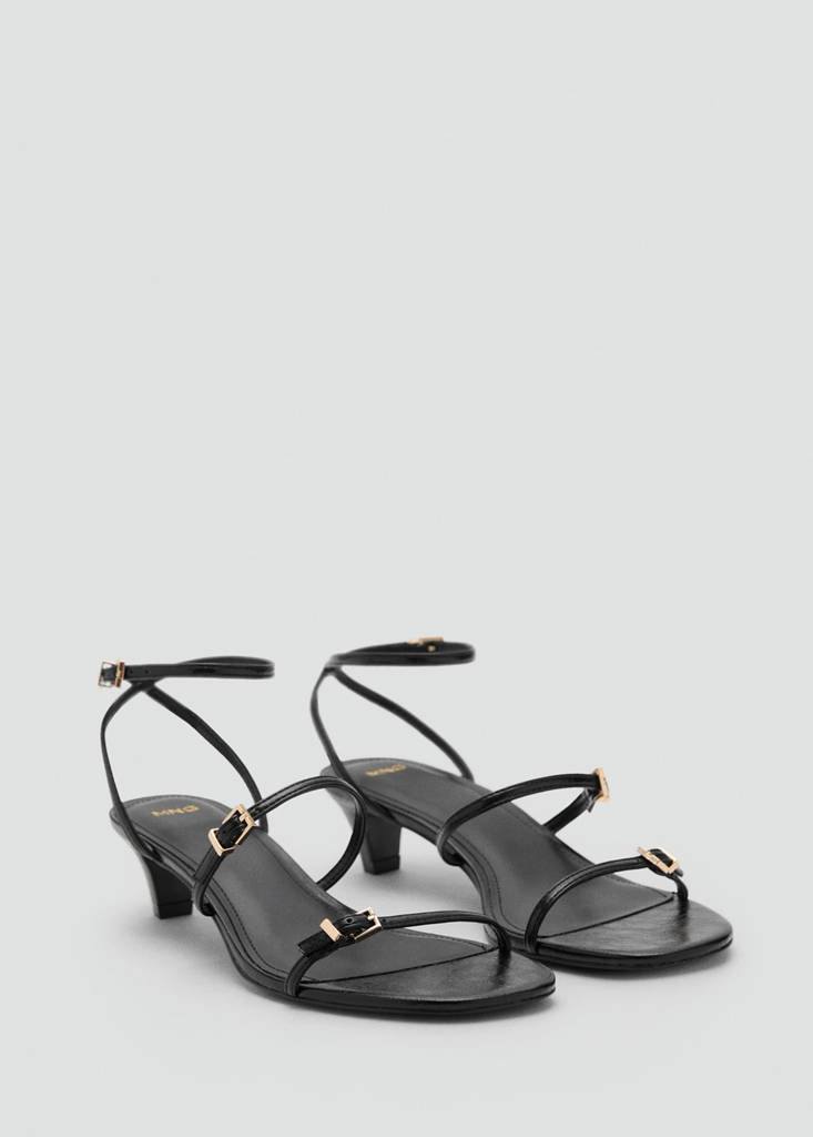 Straps design. Adjustable buckles. Kitten heel. 4 cm heel. Buckle closure. Inner lining