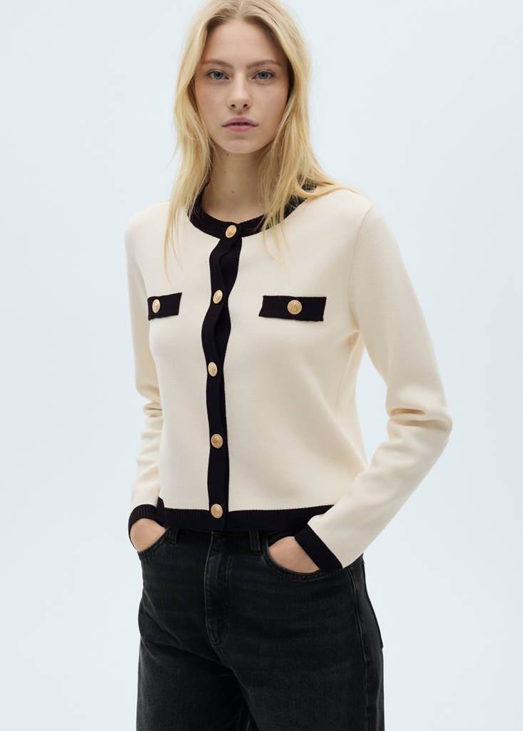 Knitted jacket with jewel buttonsCurrent price [$ 109.95 ]$ 109.95Select a colourEcruSelect your sizeXXSNot available. I want it!XSNot available. I want it!SNot available. I want it!MNot available. I want it!LNot available. I want it!XLNot available. I want it!XXLNot available. I want it!DimensionsNotify meAdd to WishlistSee lookFree delivery to storeMidpoint. Straight design. Standard design. Round neck. Long sleeves. Contrast trims. Button fastening at the front. Available Plus. The colour black is exclusively onlineDetails, composition and careStore availability