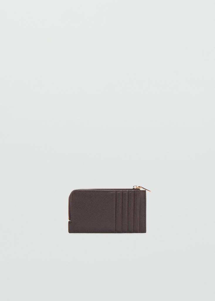 Saffiano-effect card holder with zipCurrent price [$ 25.95 ]$ 25.95Select a colourChocolateSelect your sizeOne sizeAddAdd to your wishlistSee lookFree delivery to storeFaux-saffiano leather. Debossed logo. Multiple card slots. Zip closure. Inner lining. Medium14.0x8.0x1.0 cm (Length x Height x Width)Details, composition and careStore availability