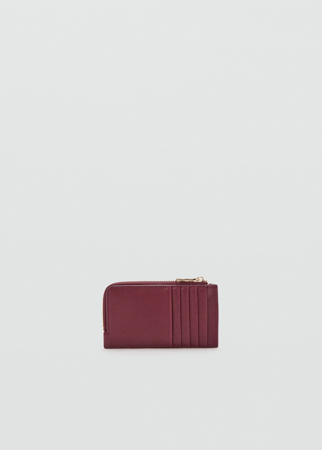EXTRA -15%: VDAY15Saffiano-effect card holder with zipCurrent price [$ 25.95 ]$ 25.95Select a colourBurgundySelect your sizeOne sizeAddAdd to your wishlistFree delivery to storeSee availability in storeDescriptionFaux-saffiano leather. Debossed logo. Multiple card slots. Zip closure. Inner lining. Medium.See detailsShare
