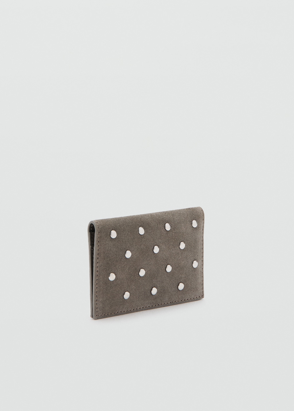 100% bovine leather. Suede. Stud detail. Four card slots. No Fastening. The grey colour is exclusive online.