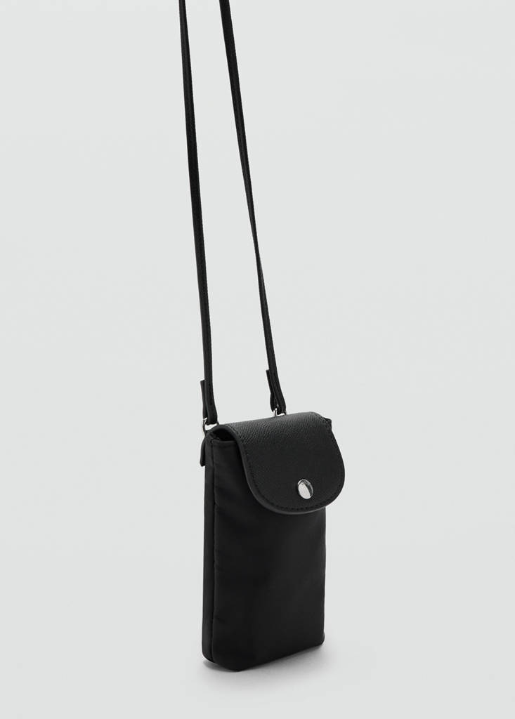 Nylon fabric. Small size. Long strap. Flap closure with snap button. Inner lining