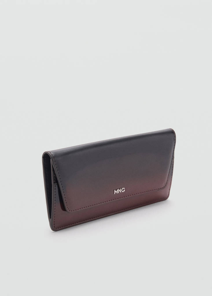Ombre. Large. Multiple card slots. Outer pocket. Flap closure with snap button. Debossed logo