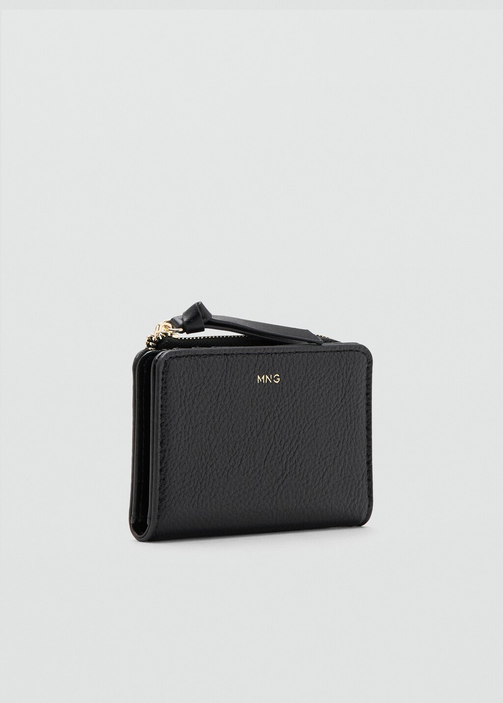 Small faux-leather walletCurrent price [$ 25.95 ]$ 25.95Select a colourBlackSelect your sizeOne sizeAddAdd to your wishlistSee lookFree delivery to storeSee availability in storeDescriptionSmall size. Faux leather. Six card slots on one side. Zipped pocket. Flap closure with snap button.See detailsShare