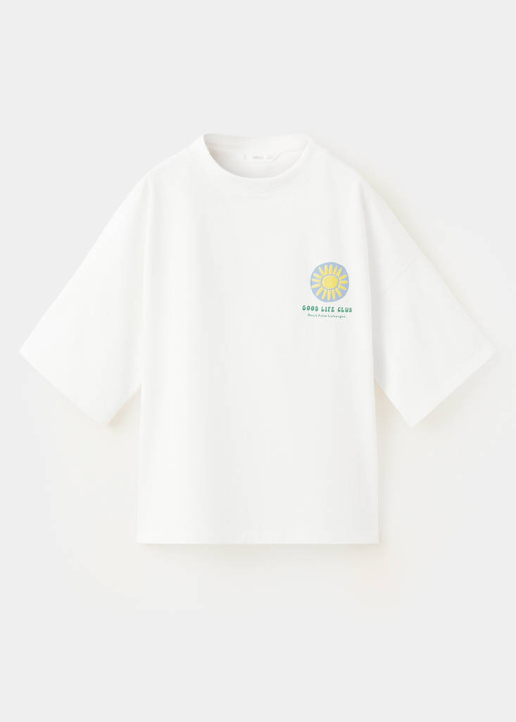 100% cotton fabric. Straight design. Silhouette Boxy. Round neck. Short sleeves. Printed drawing on the chest. Printed design on the back